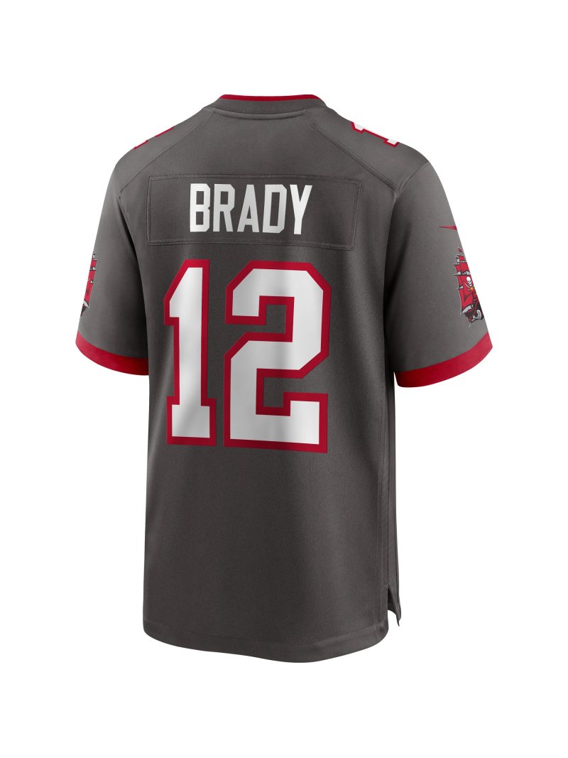 - Crafted from top-quality materials for both comfort and durability, this Tampa Bay Buccaneers Tom Brady Nike Pewter Alternate Game Jersey is a must-have for every Buccaneers fanatic. Show your unwavering support for the team by wearing this authentic and stylish jersey that will make you feel like you're part of the team, whether you're cheering at the stadium or watching the game at home.